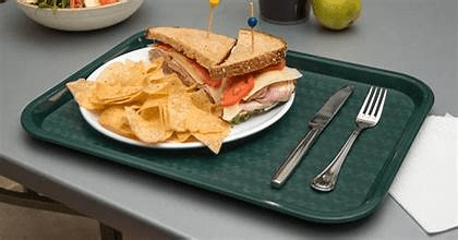 Trays used to carry food are not germ-free. The germs found on cafeteria trays are higher than on bathrooms and gym mats. So be vigilant that your tray is spotlessly clean and free of food fragments and spilled drinks.