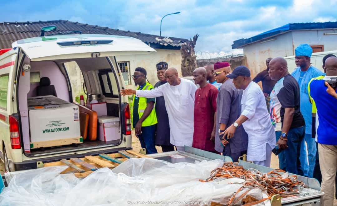 His body landed at Murtala Mohammed International Airport on Thursday afternoon around 1.20pm and was received by several dignitaries, including Senator AbdulFatai Buhari, representing Oyo North Senatorial District in the National Assembly; Senator Teslim Folarin, APC’s governorship candidate in the 2023 election; and former ALGON Chairman in Oyo State, Prince Ayodeji Abass-Aleshinloye, among others, reports Newspeak.