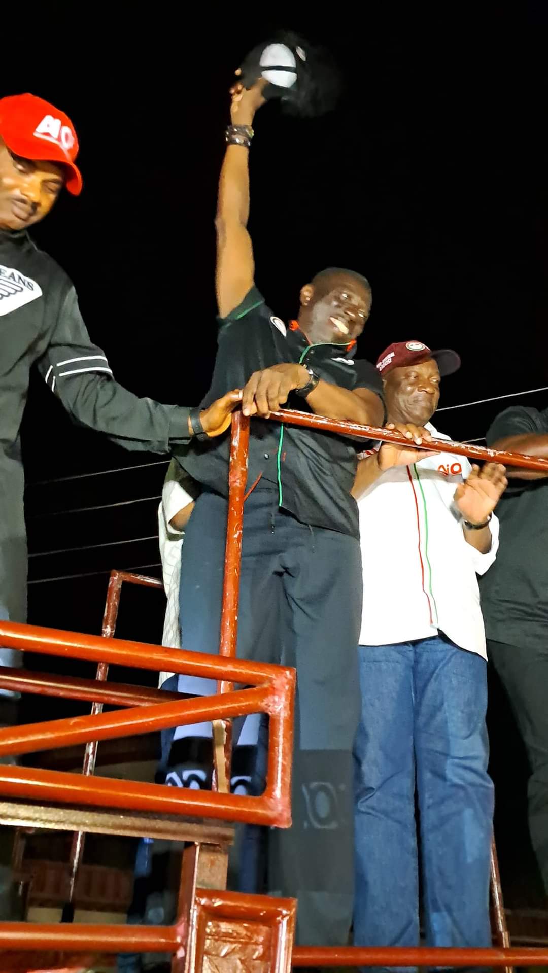 In Agbede, the campaign trail was greeted with a large crowd of excited supporters who were happy that the governor and his team still made it even at that time of the night.
