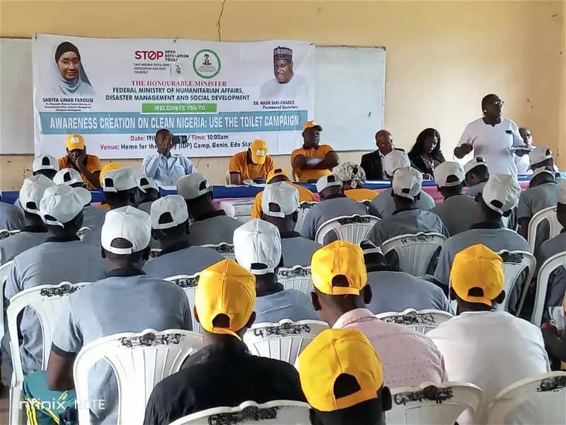 The Federal Government on Sunday took the campaign against open defecation and personal hygiene to the Internally Displaced Persons (IDPs) camp in Edo State run by the Home for the Needy Foundation where it expressed fears of Nigeria not meeting the 2025 target to end open defecation if there is no attitudinal change by Nigerians.