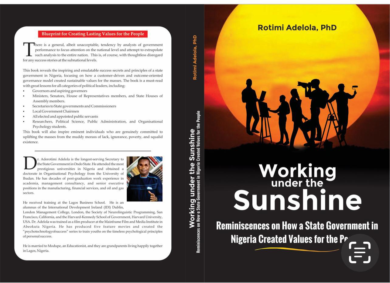 Having been in close association with the author for close to 40 years, we testify to the fact that these character traits keep evolving; making an appearance at the different stages and phases of his life, and always serving him well in the different stations of life in which he found himself. It is no surprise, therefore, that a book of this nature coming from him, crafted in the alluring genre of what he calls, ‘spiritual psychology,’ is a must-read. This is why it is safe to conclude that Working under the Sunshine: Reminiscences of How a State Government Created Values for the People, by Dr. Andrew Aderotimi Adelola, self-recommends.