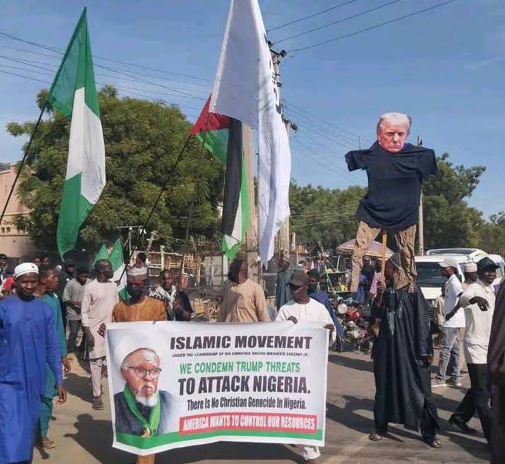 Members of an Islamic movement group in Kano State staged a protest on Saturday to condemn statements by U.S. President Donald Trump, who recently claimed that Christians in Nigeria are being subjected to genocide and warned of possible military intervention.