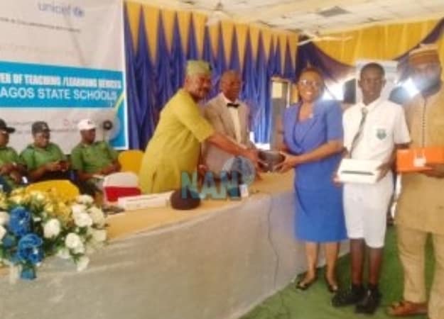 The Commissioner for Education, Mrs Folashade Adefisayo said that at the handover of the tablets, projectors, and internet routers at Agidingbi Senior Grammar School, Ikeja, that they were donated by United Nations International Children’s Fund (UNICEF).