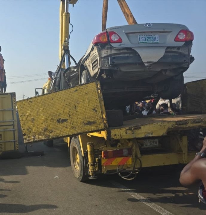 The statement read, “In a distressing incident, a 40-foot loaded container fell onto a Toyota Camry, registration number LSR 293 HJ, at Mile 2, en route to Apapa.