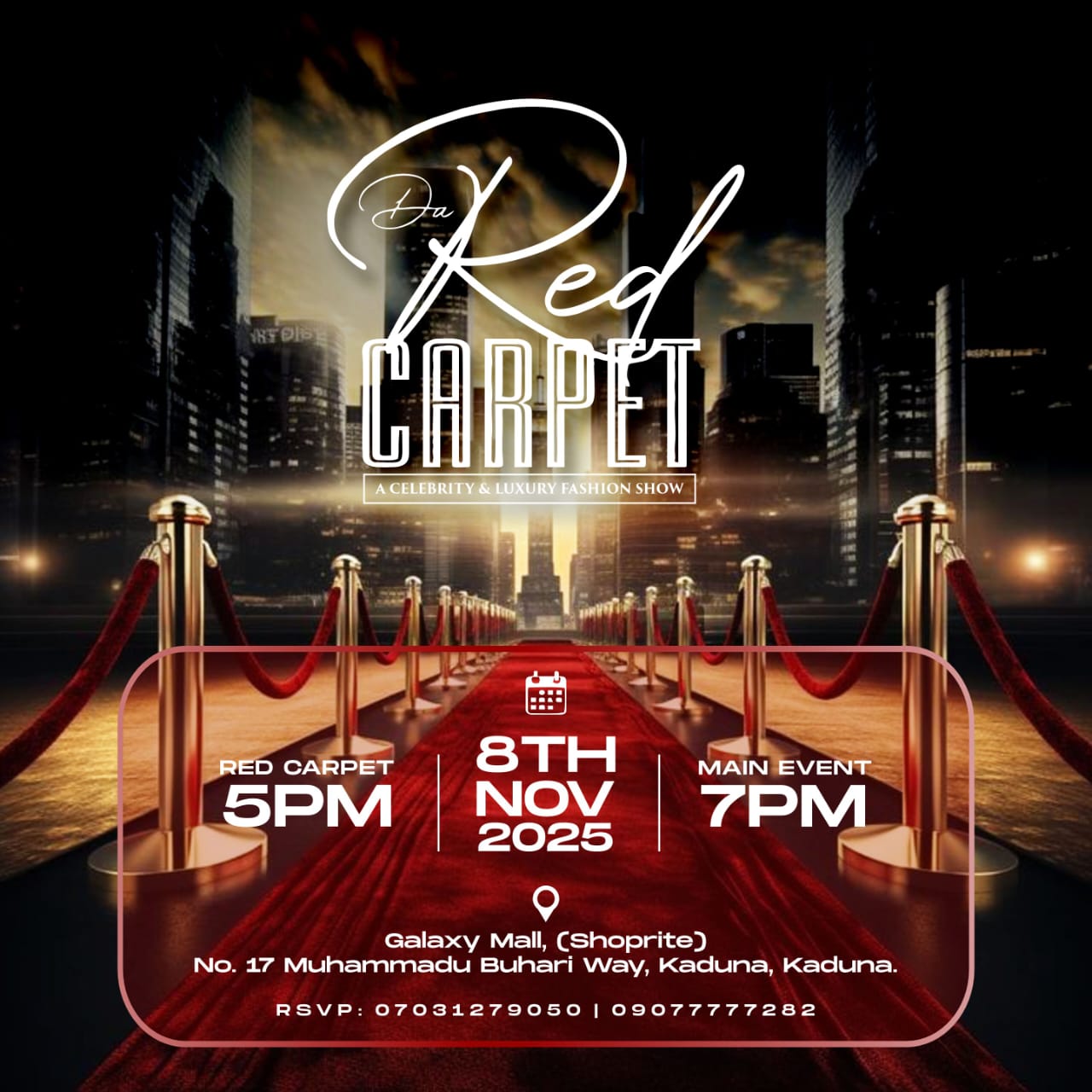 All roads will lead to Galaxy Mall, Kaduna, Nigeria on Saturday, 8 November 2025 from 6pm as Mr. Fixit Consulting presents the Starlight Runway: Da Red Carpet and A Celebrity Fashion Experience — a dazzling celebration of Northern Nigeria’s fashion, creativity, and entrepreneurship.