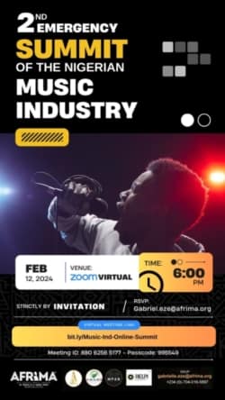 In line with its commitment to finding further lasting solutions to critical challenges in the music industry, all is set as the All Africa Music Awards (AFRIMA) Music Business Summit in partnership with the Performing Musicians Employers Association of Nigeria (PMAN), Record Label Proprietors Initiative (RELPI), Association of Music Artist Managers of Nigeria (AMAMN) and Music Publishers Association of Nigeria (MPAN) holds the 2nd emergency summit of stakeholders on Monday, 12th February 2024.