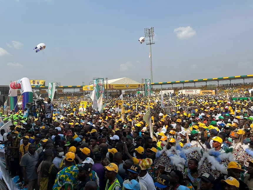 The rally had in attendance the APC vice presidential candidate, Senator Kashim Shettima; Speaker of the House of Representatives, Rt. Hon. Femi Gbajabiamila; Lagos State Governor Babajide Sanwo-Olu; and his wife, Dr Ibijoke; Kwara State Governor AbdulRahmaan AbdulRazaq; and Ekiti State Governor Biodun Oyebanji.