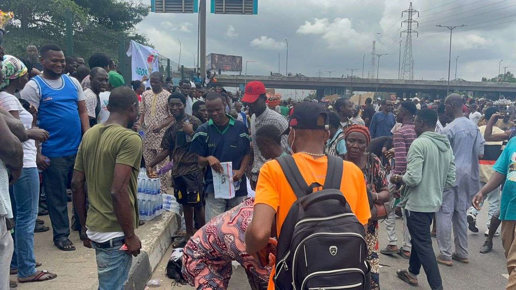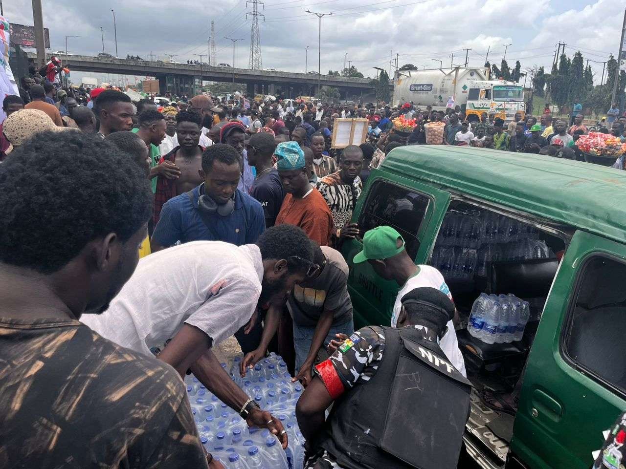 A remarkable display of unity was captured in Ojota, Lagos, as police officers distributed bottled water to protesters, showcasing a rare moment of solidarity between law enforcement and demonstrators.