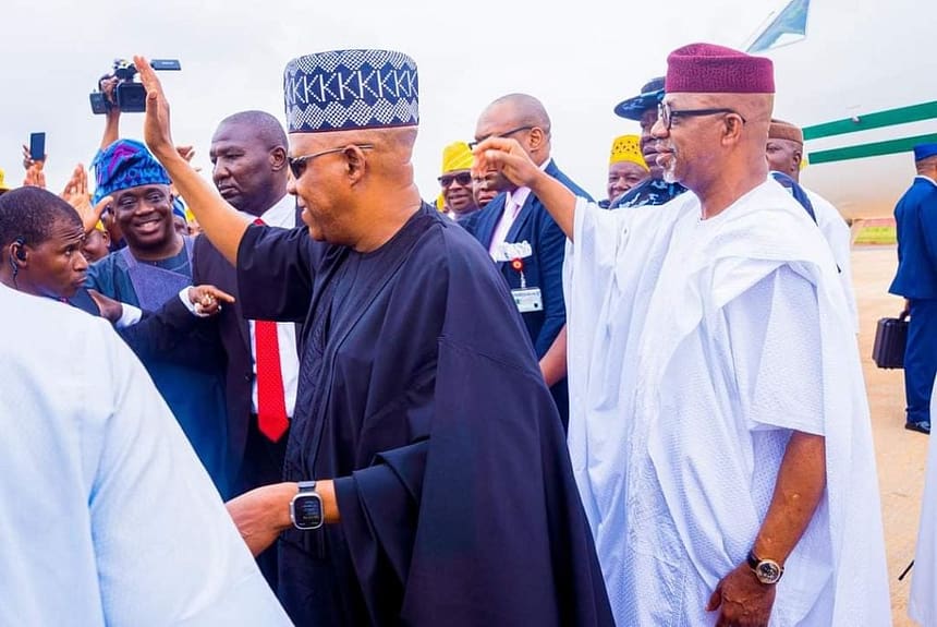 Vice President Kashim Shettima on Saturday met with Governor Dapo Abiodun in Ogun State.