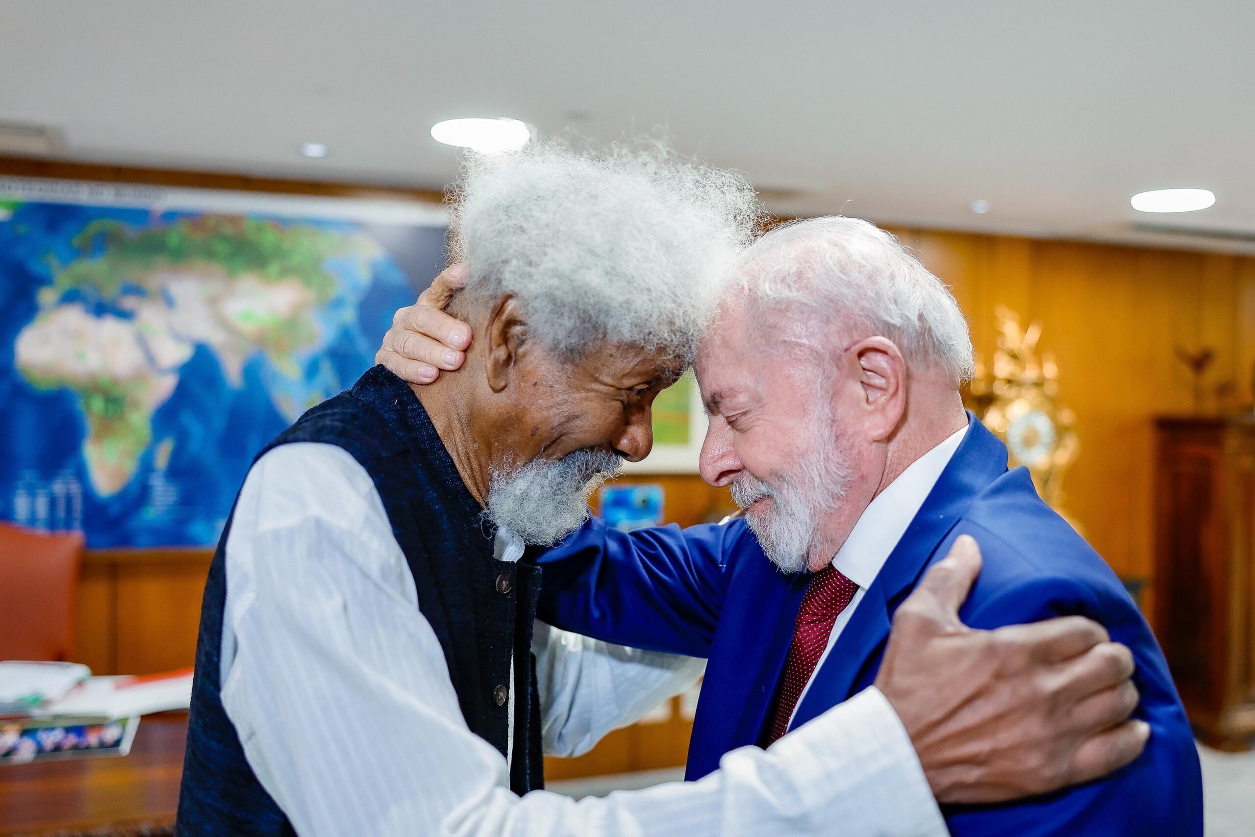 During a landmark meeting in Brasília, President Lula warmly welcomed Soyinka, symbolically requesting the elder statesman’s blessing by touching foreheads with the nonagenarian in a gesture of mutual respect and transference of grace, saying, “The grace on you, I ask it upon myself.”