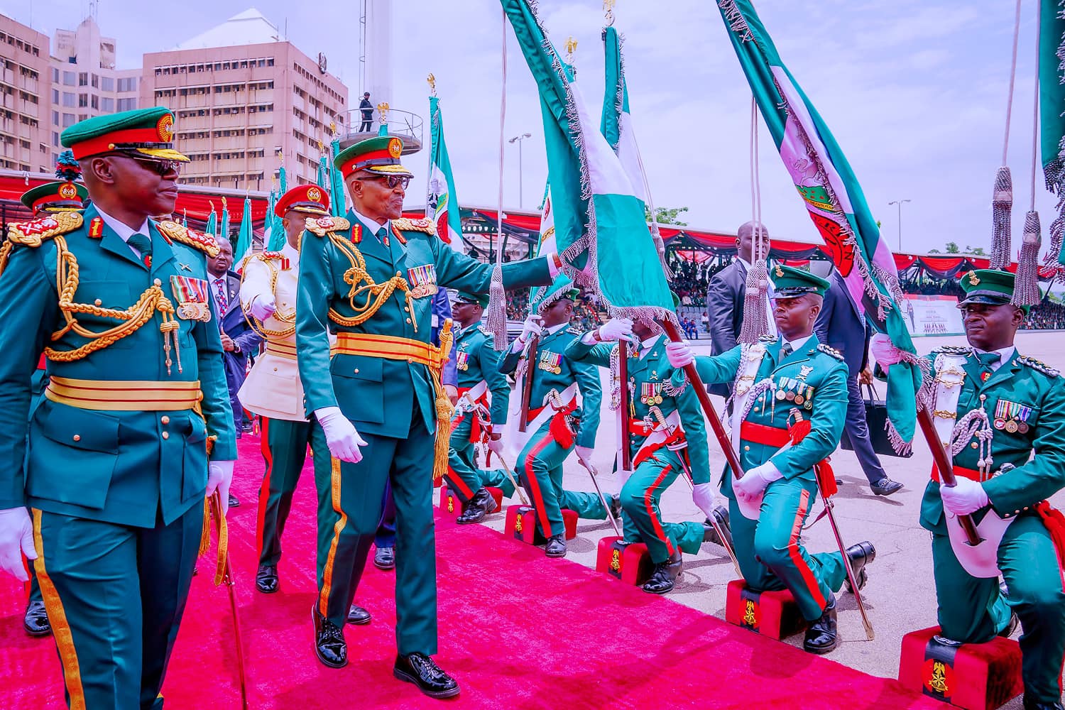 At the Nigerian Army Trooping and Presentation of Colours Parade 2023 held at Eagles Square in Abuja on Thursday, the President Buhari told the dignitaries that included the Chief of Defence Staff, General Lucky Irabor: “It is instructive to state that from 2015 when I was sworn in as the President and the Commander-in-Chief of the Armed Forces, Federal Republic of Nigeria, I facilitated the recruitment of over 60,000 soldiers for the Nigerian Army aside thousands of commissioned officers from the Nigerian Defence Academy, Kaduna”.